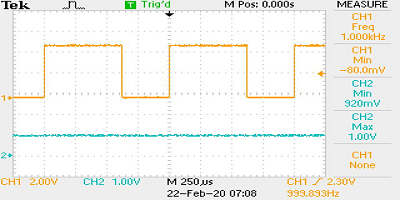 8.此屏幕截圖顯示了以0-5 kHz的比例施加的1.000 kHz輸入頻率,以及其各自的1.00 V輸出。