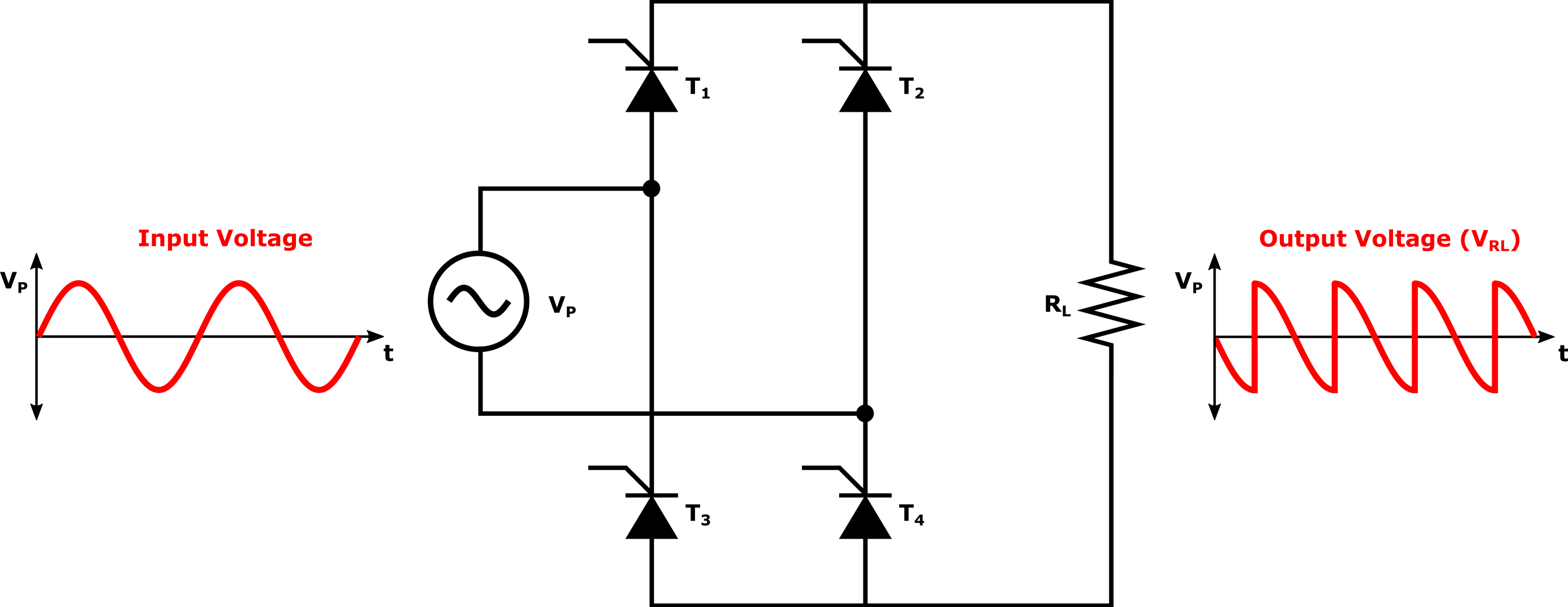 全波整流器將整個(gè)輸入波形轉(zhuǎn)換為單極性恒定輸出(正或負(fù))。全波整流將輸入波形的兩個(gè)極性都轉(zhuǎn)換為脈動(dòng)的DC,從而導(dǎo)致更高的輸出電壓。